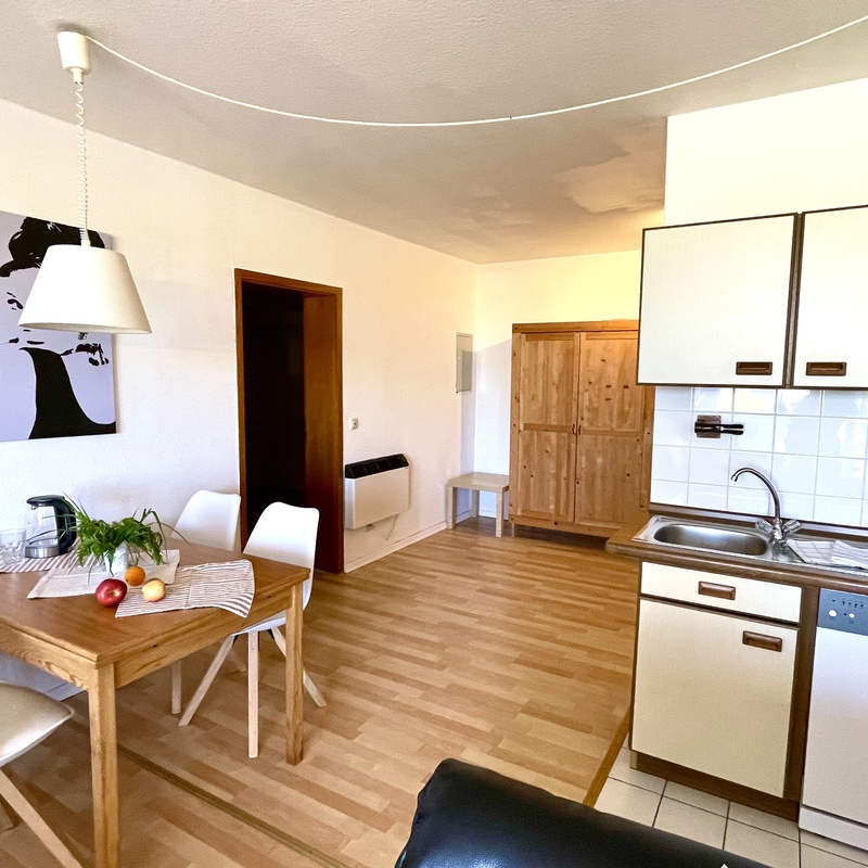 Der „Falkenhorst“ trägt seinen Namen nicht umsonst: Zu bestimmten Zeiten brüten Falken direkt über deiner Terrasse! 2024 wurden Küche, Flur und Bad komplett saniert.